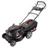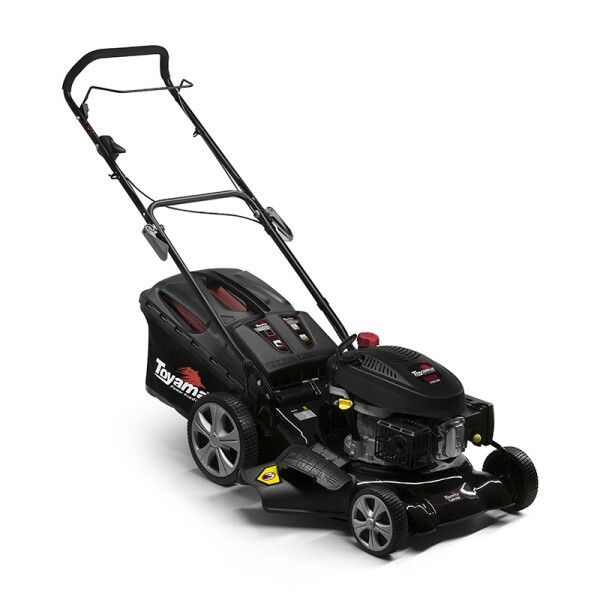 Cortador de grama a gasolina 4 em 1 com tração. Com saída lateral, saída trazeira, recolhedor e reciclador de grama.Possui deck de corte com 7 regulagens de altura com alavanca central e lâmina de 51cm de corte que aumenta o rendimento do trabalho. Equipado com rodas rolamentadas com diametros frontais de 7" e rodas altas na trazeiras de 10", que proporcionam uma vida util maior em relação as rodas com embuchamento e uma dirigibilidade mais leve e confortável, devido a sua empunhadura em soft grip. Chassis em aço reforçado e acelerador completam o equipamento. Possui motor Toyama 4 tempos com potencia de 6hp, economico e resistente.