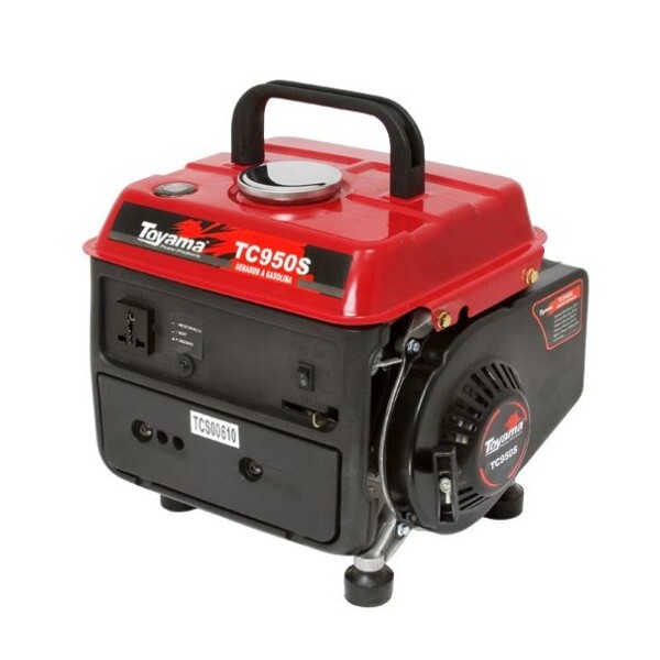 Grupo Gerador Toyama, partida manual, monofásico, potência máxima de 0,95 KVA e potência nominal de 0,84 KVA, 110 volts, equipado com tanque de 4,2 litros que proporciona aproximadamente 6,5 horas de autonomia.