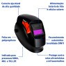 Escurecimento automático — o filtro muda de claro (ver normalmente) para escuro quando a soldagem começa e retorna ao claro ao finalizar, sem necessidade de remover a máscara.
