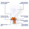 Controle de vazão: permite ajustar a quantidade de material projetado para maior precisão.