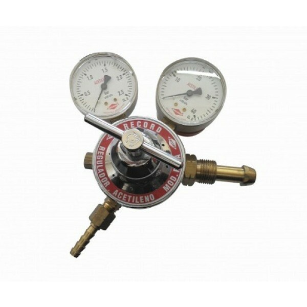 O Regulador de Pressão Acetileno R100A da Record é um regulador de pressão para uso em cilindros de acetileno, usado normalmente em soldagem oxiacetilênica (solda/corte/aquecimento).